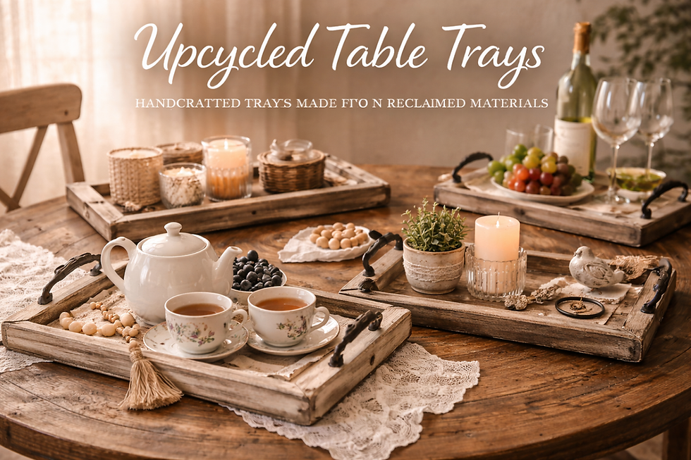The Once More in Bloom Collection celebrates renewal through design. Each tray begins as a forgotten or overlooked piece and is thoughtfully transformed using resin, glass, and curated artwork—giving it new purpose, beauty, and life. No two are ever the same..